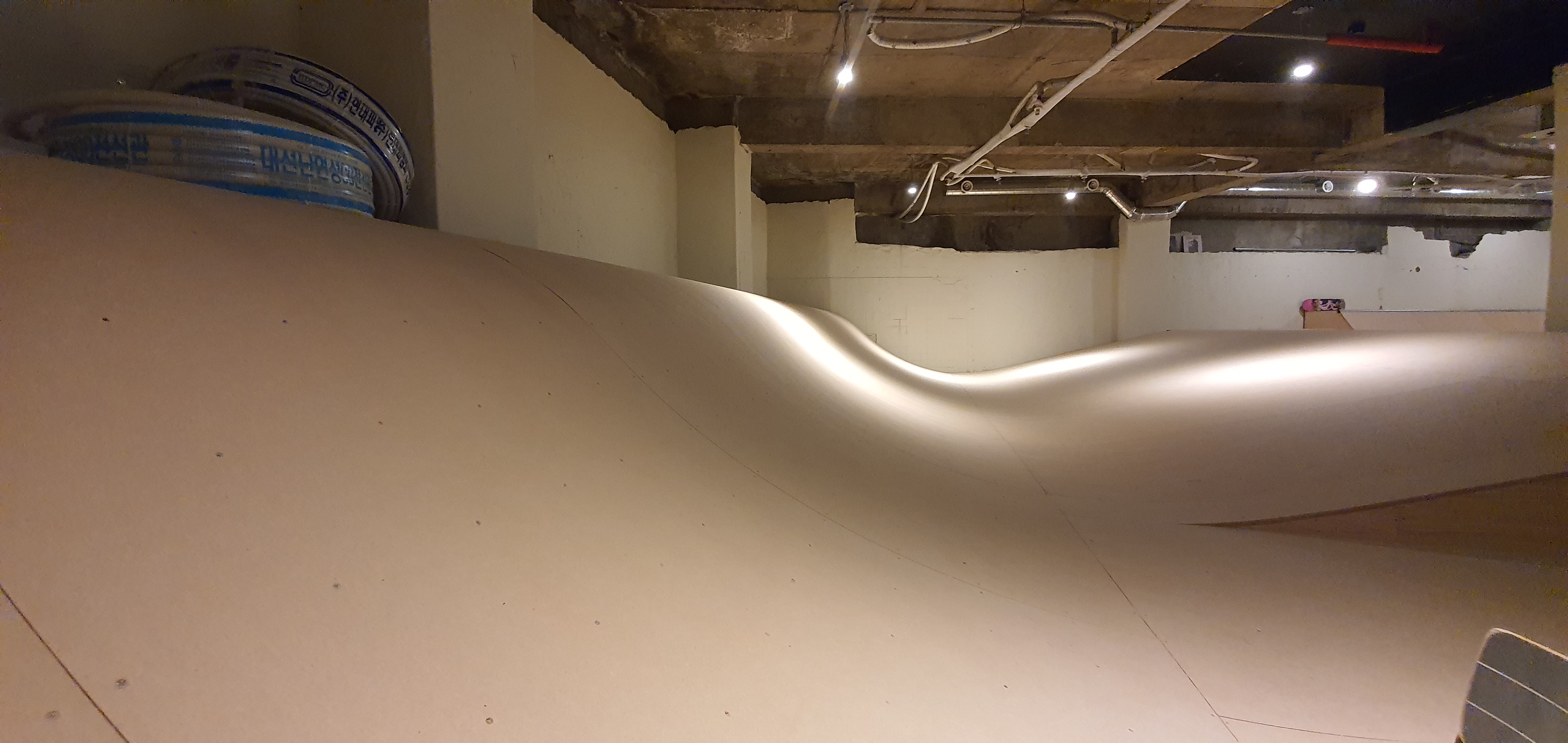 어릴적 스케이트보드 프로를 했던 클라이언트로 강습을 위한 공간으로 초급,중급,상급의 기물이 조화롭게 배치되어 만들어졌습니다.